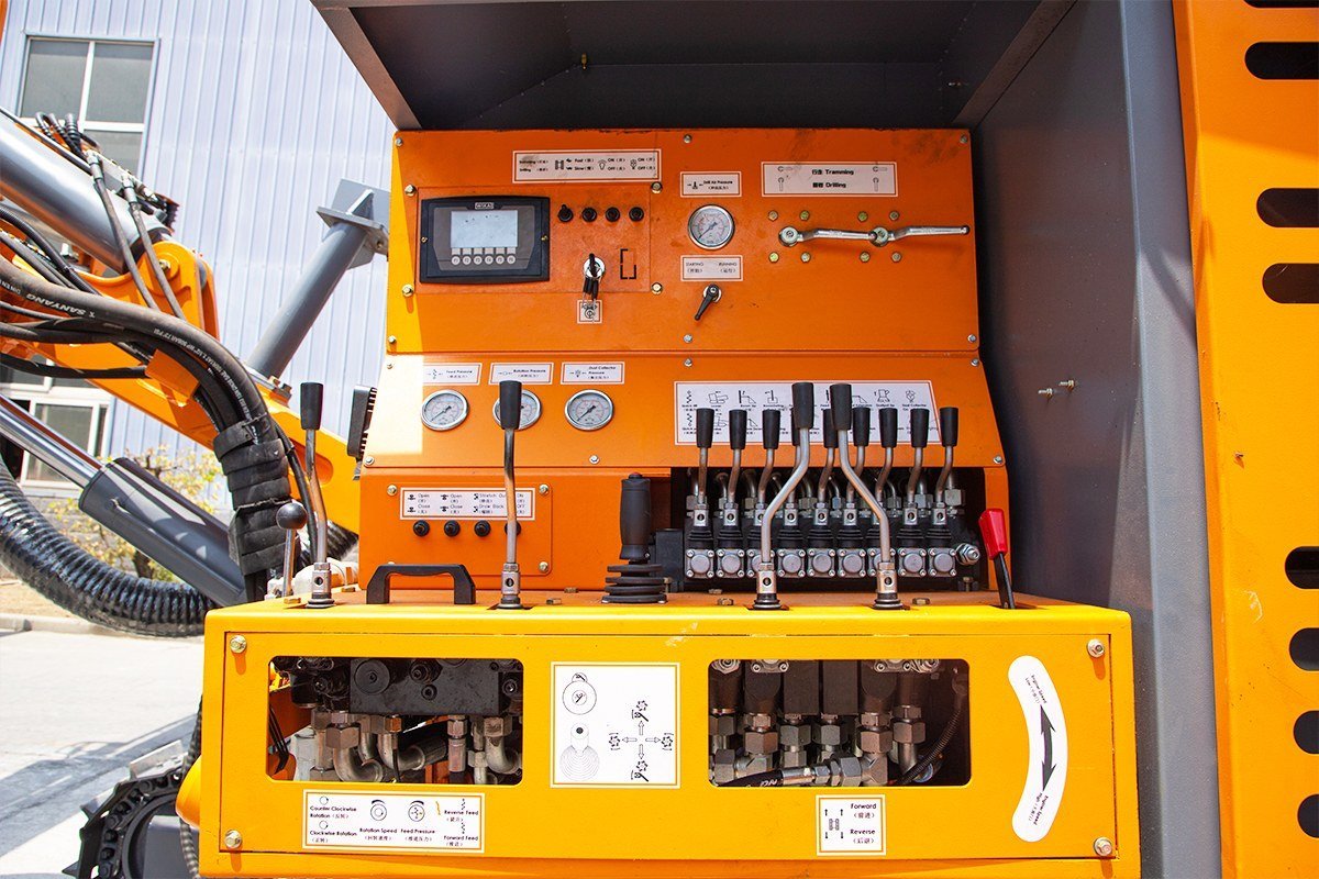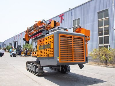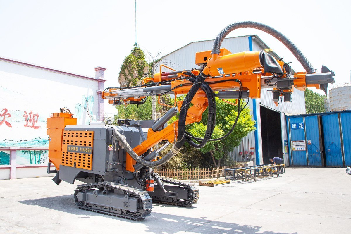 The DTH drilling rig is specifically designed for drilling blast holes in medium to hard rock, with a diameter range of 90-130 mm and a maximum depth of 24 m.Main feature:1. Equipped with an automatic rod changing mechanism, enabling efficient rod changes and reducing manual labor intensity while improving safety.2. Utilizes a new electronic control system with a centralized power distribution cabinet, facilitating convenient fault detection and troubleshooting.3. The overall machine layout is well-designed, providing ample space for equipment maintenance and servicing.4. Features a two-stage compressor head, delivering high efficiency and energy savings during operation.